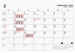 2月定休日